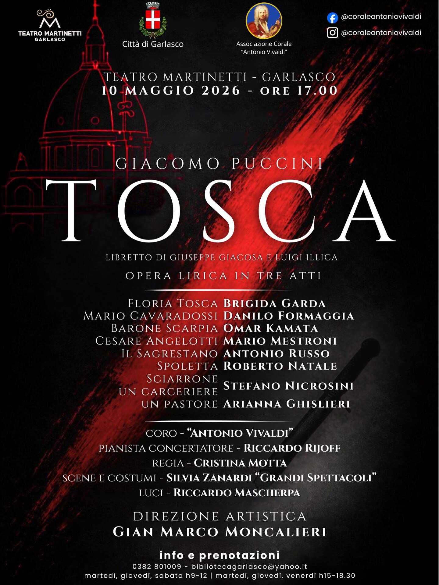 L’Associazione Corale “Antonio Vivaldi” è lieta di presentare uno degli appuntamenti più attesi della stagione: Tosca, il celebre capolavoro di Giacomo Puccini.